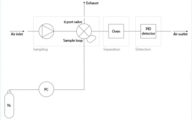 由于空气分析仪是移动且紧凑的设备,其所需的质量流量控制器和压力控制器也须是紧凑的。此外,须准确控制包含挥发性化合物的空气流动在ppb范围内(1-400ppb)。分析仪是可移动且准确的设备,同时须几乎实时地连续执行任务。
